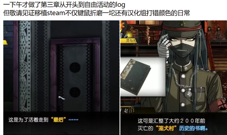 这几天在打V3本体2~6章,顺便录尽量触发全对话or庭审错误的视频/整理文本log寻找细节。