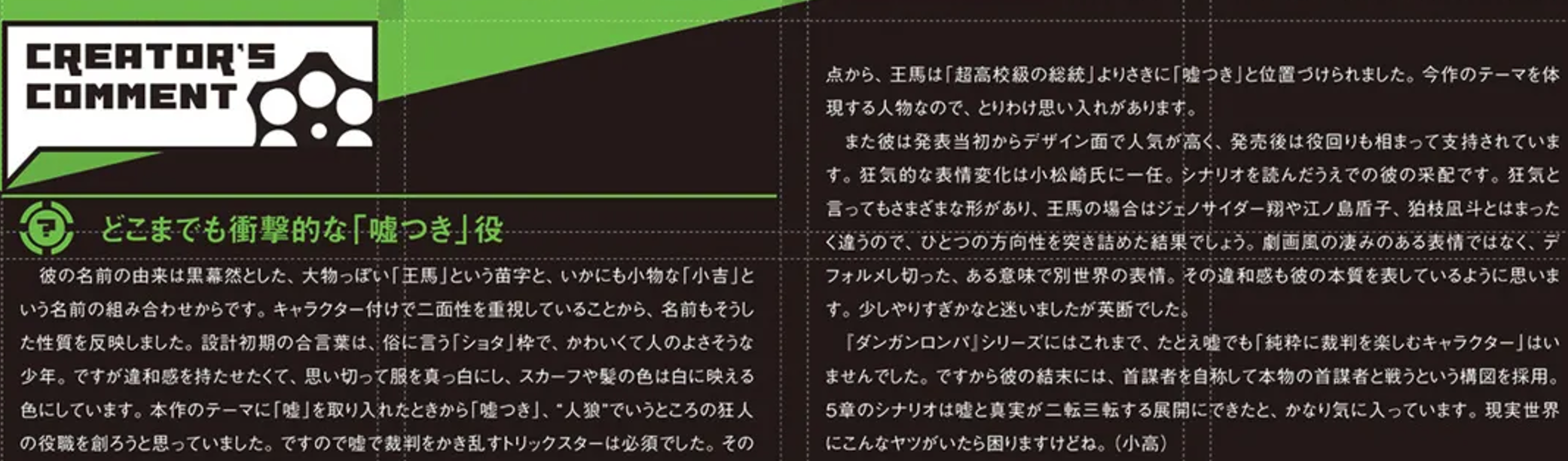在开头,小高使用了【黑幕】这个前代对主使的称呼。这是因为王马的地位确实和前代的黑幕(在剧本里)是同样的。