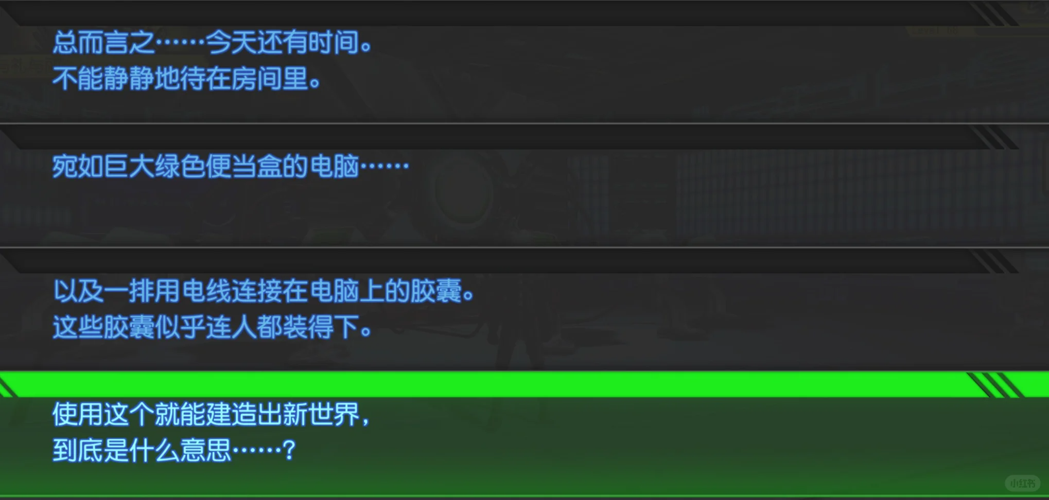 如果在第四章的自由活动环节进入电脑室调查这个盒子,会出现下图对话内容。