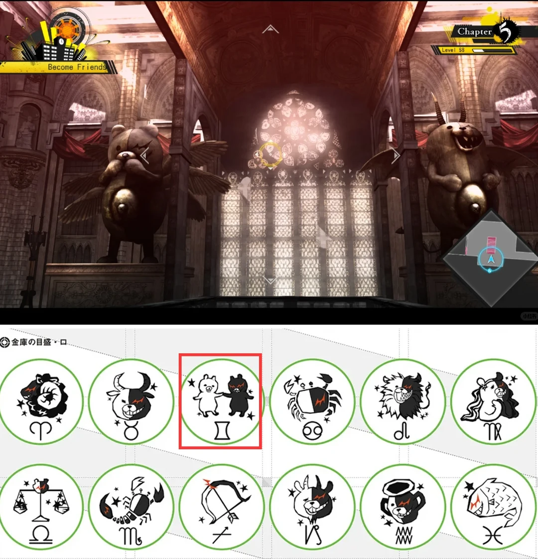 五楼巨大的分列在两边的天使黑白熊/恶魔黑白熊雕像,也可能在对应双子座这一点(谜题的天海教室也是在五楼)。