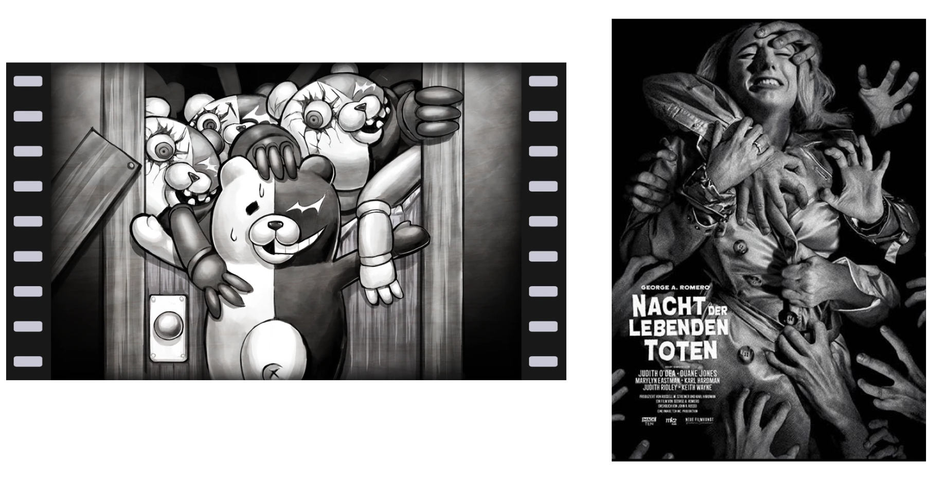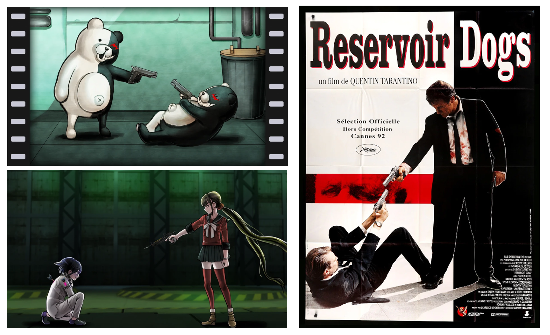 他说【当你看到黑白熊剧场时,一切都已经太迟了】,而春川刺杀王马的cg完全对照这张neta《落水狗》的剧照。