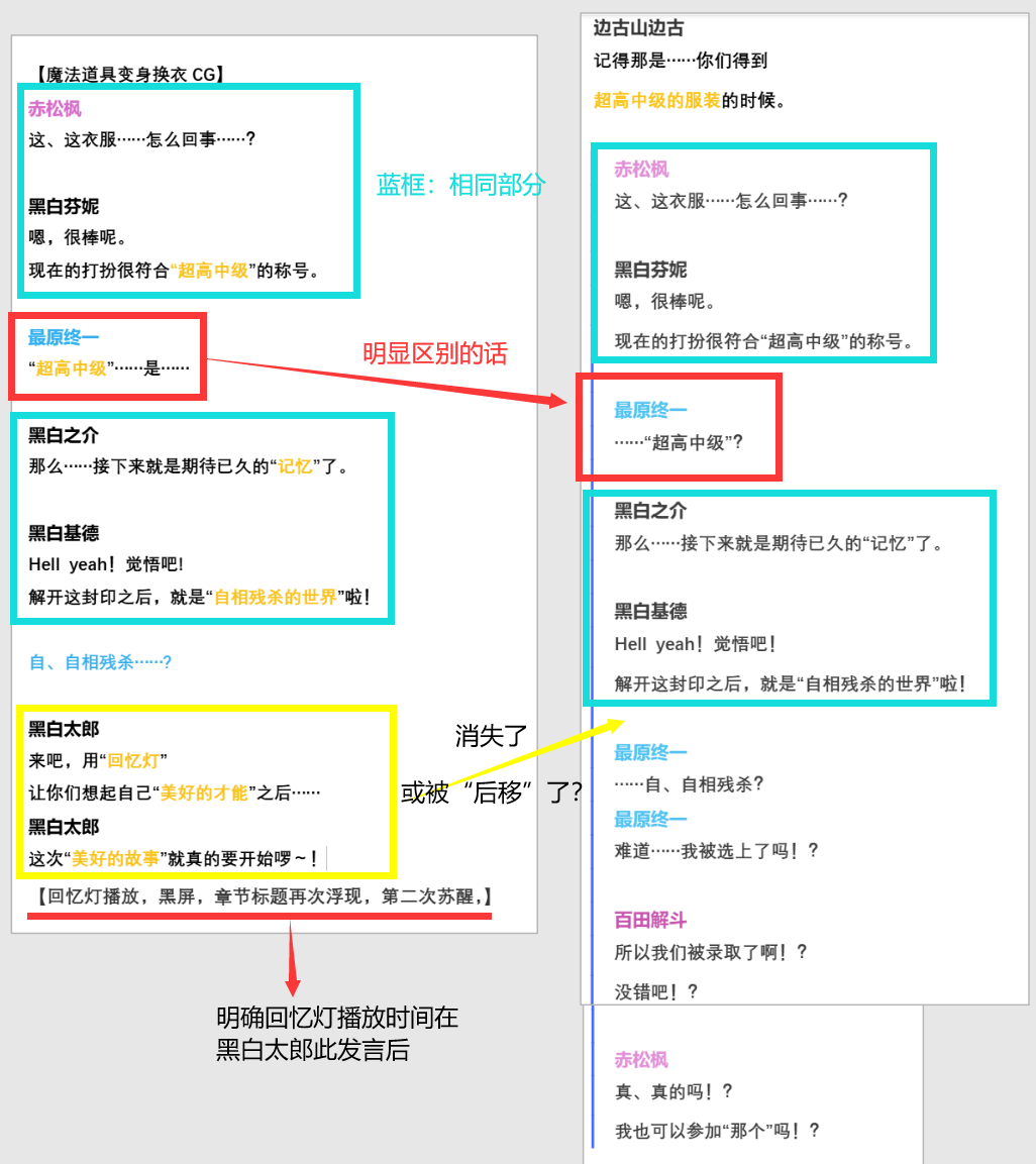 (同样的做文章行为也体现在王马羁绊上,“在这里或许就已经身处骗局之中”的王马羁绊③,最早也是发生在第三章)