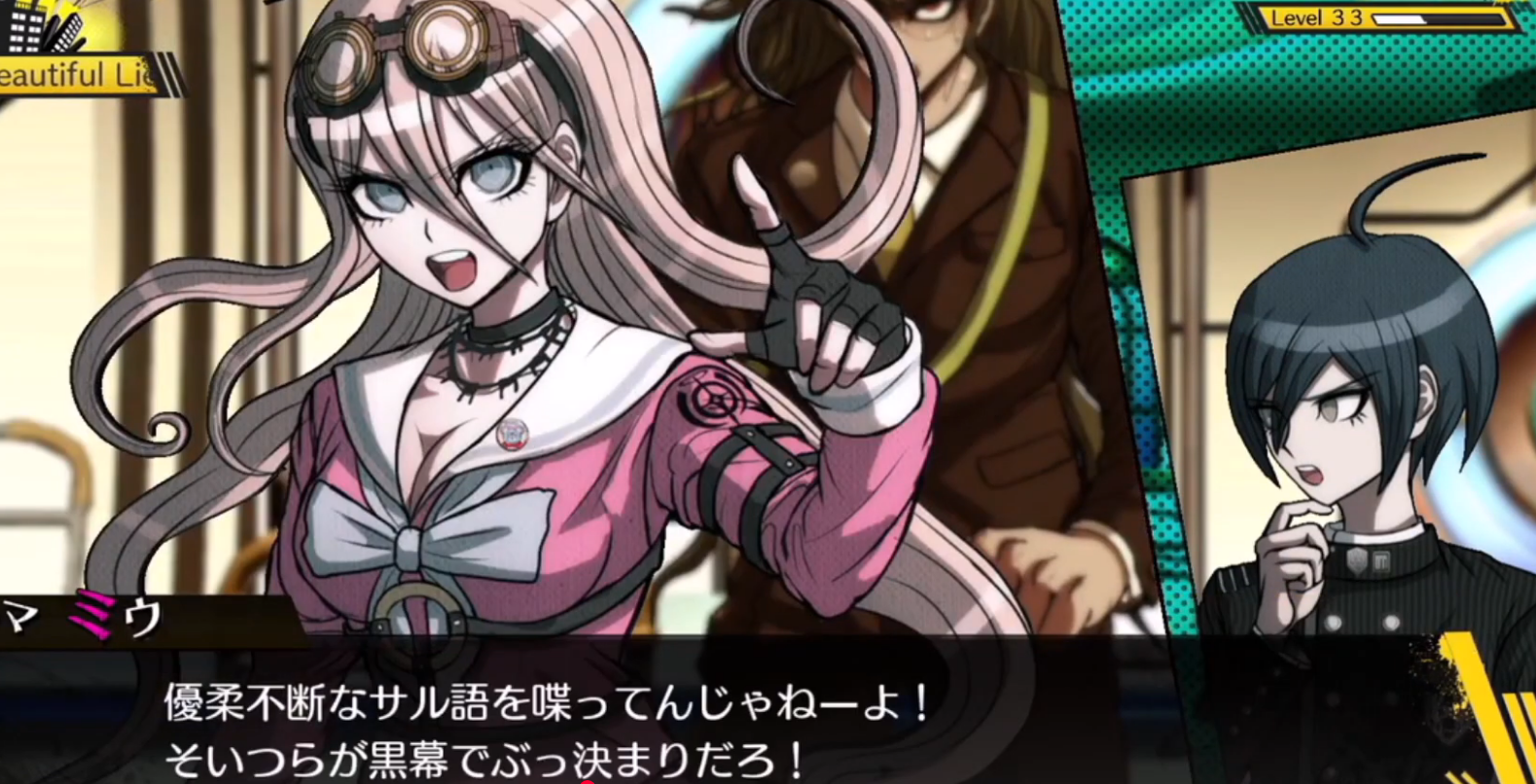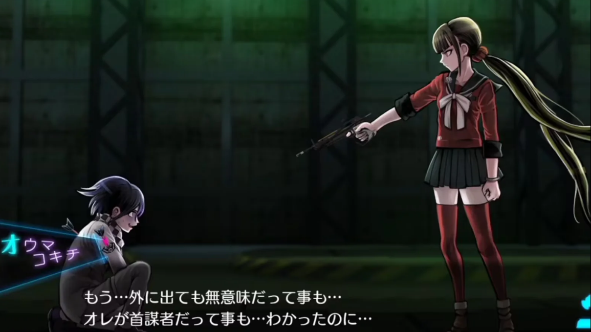 她第一句问话制作组没有明确做出,但很显然接近于“你是不是绝望的残党”这样的话,因为王马的回复是: